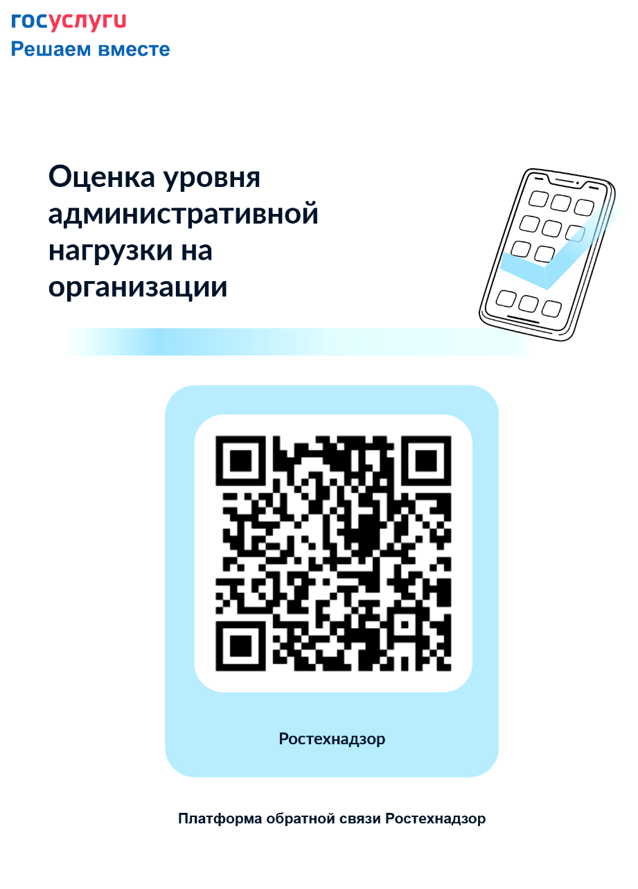 Принять участие в опросе можно по ссылке «Оценка уровня административной нагрузки на организации, осуществляющие деятельность в области промышленной безопасности», а также отсканировав QR-код камерой мобильного устройства ↓